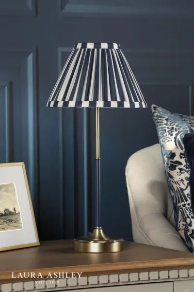 Elegant and timeless, the Laura Ashley Denwick Table Lamp features a dual-toned navy and cream striped shade that offers a classic yet contemporary look.
